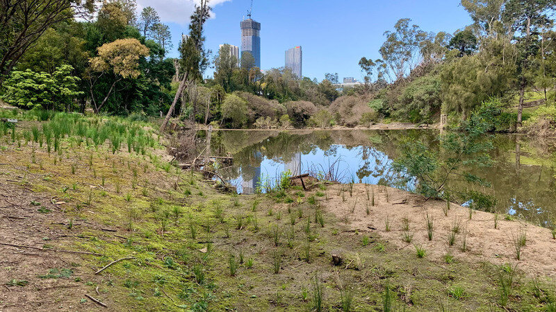 This image was similarly a litter-filled, weed-infested riparian zone, that is now rehabilitating with low-impact bush regeneration and revegetation. It will recover to provide diverse wildlife habitats and express the story of the Burramatta River.