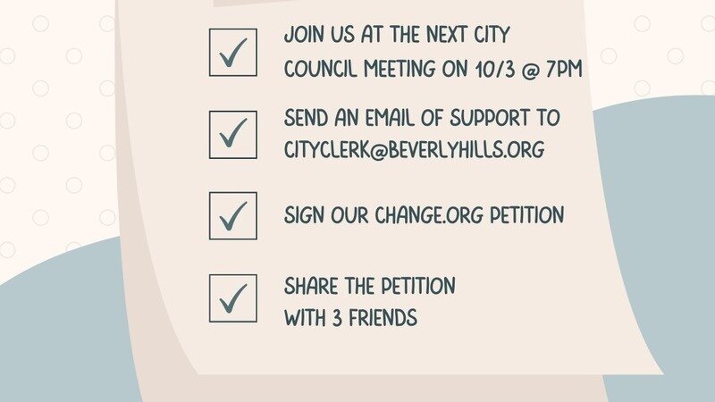As we head into the week, our next big initiative will be the Beverly Hills City Council meeting this Tuesday, October 3 at 7pm. We would love to have you join us, either in person or virtually! In particular, we’re looking for volunteers to give public comment, but that is not a requirement to attend (neither is being a Beverly Hills resident!). If you’re not comfortable with public speaking, the council does accept virtual comment by phone or email. Please email comments to cityclerk@beverlyhills.org (and cc Attorney General Rob Bonta’s office at piu@doj.ca.gov).