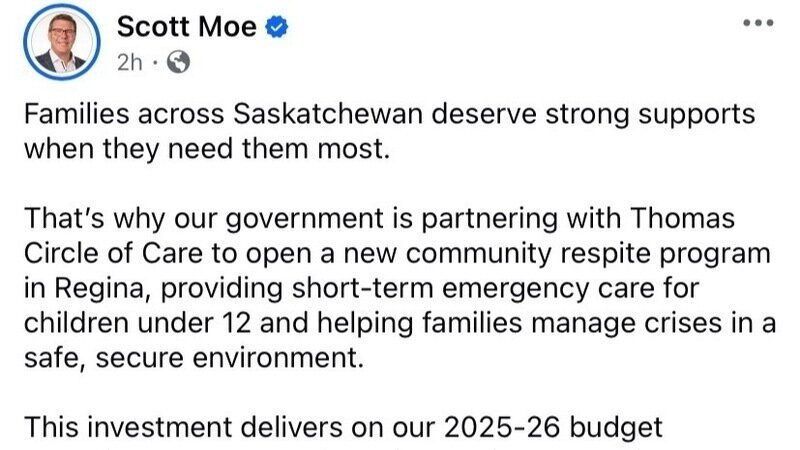 2) Hon. Scott Moe’s Facebook page, under the post: “Families across Saskatchewan deserve strong supports when they need them most.”