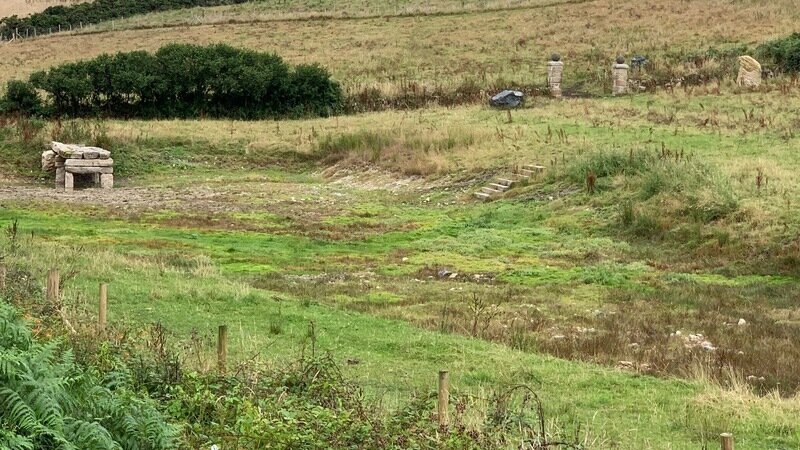 The photo is of the “pond” which was like this for 8 months of the Year even with the Wettest July on Record and a Wet August. Now is filled to Capacity ! When viewed from some distance , can seem attractive when full, but looks can be deceptive. Viewed closer , and from many points in the Valley it is a blot on the landscape, with its embankments and down trodden banks by cattle , tumbling into the Cot Stream causing irreparable damage to the waterway.