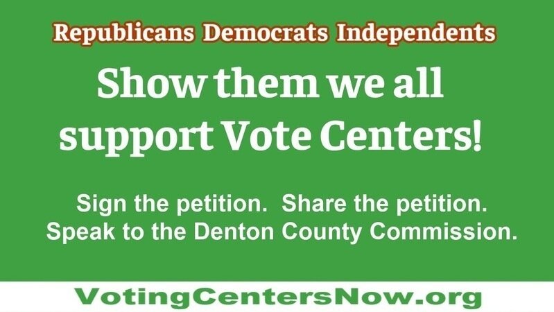 Thank you for signing our petition for countywide Election Day Voting — Vote Centers — in Denton County at Change.org.