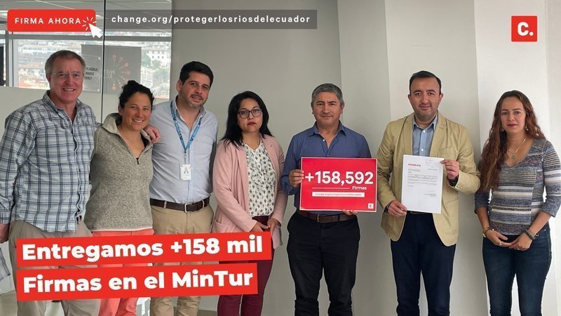 Actualización de la peticiónProteger los ríos del Ecuador/ Protect the most emblematic rivers in EcuadorEl Ministerio de Turismo nos escuchó. Entregamos más de 158 mil firmas.