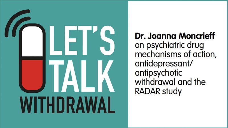 On the Let's Talk Withdrawal podcast this week, we interview Psychiatrist and author Dr. Joanna Moncrieff. Dr. Moncrieff is one of our leading experts on psychiatric medications and it was an honour to be able to interview her for the podcast.
