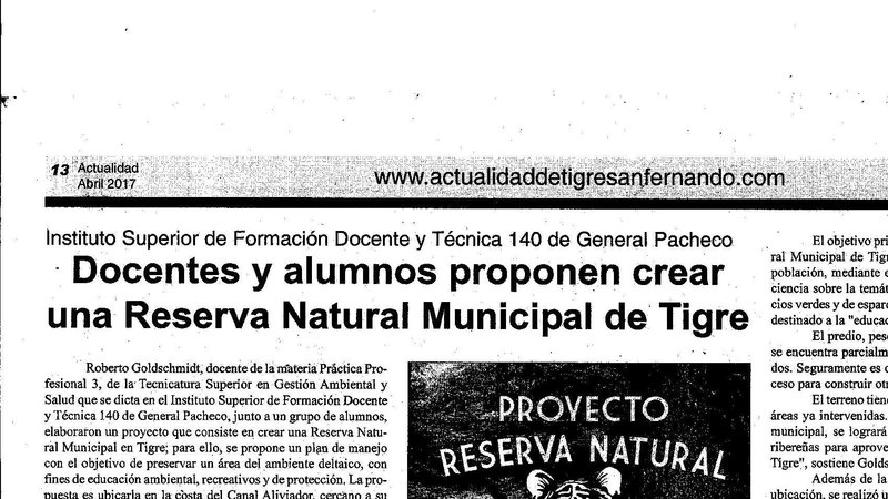 En el número de abril de Actualidad Tigre se publicó una nota sobre el proyecto de la Reserva Natural Municipal.