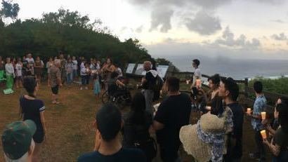 The members of Prutehi Litekyan: Save Ritidian (PLSR) extend Un Dångkolo na Si Yu'os Ma'åse' and thank everyone who attended our candlelight vigil last night. We gathered together at the Ritidian Overlook - a space that connects Tailalo’ to Litekyan and we came together in ceremony to honor these sacred spaces and the struggles of our people. We are extremely humbled and moved by the beautiful gathering of well over 100 individuals who made the trip out to the Overlook to be with us. We are also extremely grateful to all of the original landowners, storytellers, chanters, singers, and poets who gave their offerings in words and music. We are fortified by our unified commitment to protect our island home and we are inspired by our mutual love for Litekyan. Please visit us on Facebook (https://www.facebook.com/saveritidian/) and Instagram to view some great photos and videos of the event.