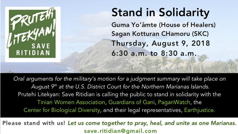 Prutehi Litekyan: Save Ritidian (PLSR) calls on the public to stand in solidarity with Tinian Women Association, Guardians of Gani, PaganWatch, the Center for Biological Diversity, and their legal representatives, Earthjustice.