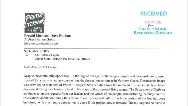 Ten months ago, Prutehi Litekyan transmitted a letter to State Historic Preservation Officer Patrick Lujan urging that he invoke Stipulation 13 of the Programmatic Agreement objecting to further buildup construction with impacts to cultural heritage sites due to inadequate background research, the desecration of our ancestral burials, and the permanent destruction of our land, endangered species, and invaluable resources, including the risk of compromising our island’s main water source.⠀