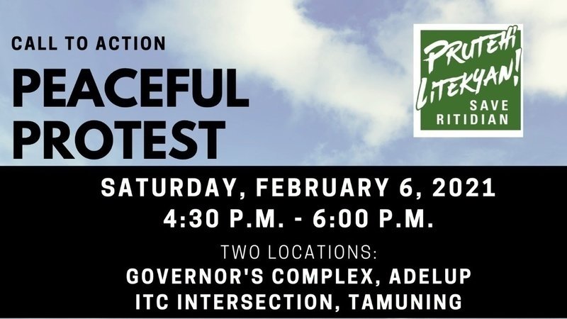 Join us on Saturday, Feb. 6 at 4:30 p.m. for a peaceful protest at two locations: ITC Intersection in Tamuning and the Governor's Complex in Adelup.