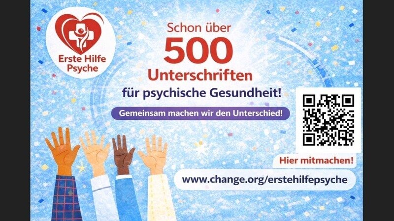 Petition updatePsychische Gesundheit: EHP - Erste Hilfe Psyche ins Regelsystem aufnehmen✨ Über 500 Menschen in einer Woche: Gemeinsam für echte Veränderung