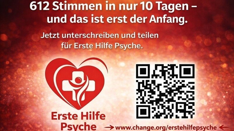 Wir fordern, dass Erste Hilfe für psychische Gesundheit endlich so selbstverständlich wird wie körperliche Erste Hilfe als fester Bestandteil der Grundversorgung, niedrigschwellig, erreichbar und frühzeitig.