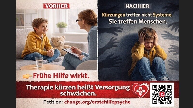 Petition updatePsychische Gesundheit: EHP - Erste Hilfe Psyche ins Regelsystem aufnehmenKürzungen treffen keine Systeme. Sie treffen Menschen.