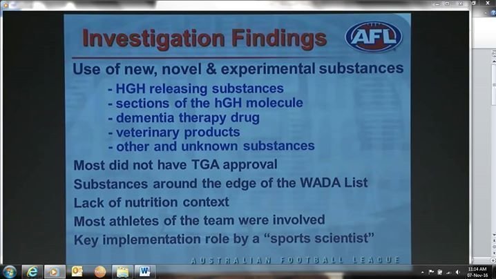 Further, on 29 November 2013, at a FIFA hosted Anti-Doping conference in Zurich Switzerland, Dr Peter Harcourt, then AFL Chief Medical Officer, takes player confidentiality breaches one step further.