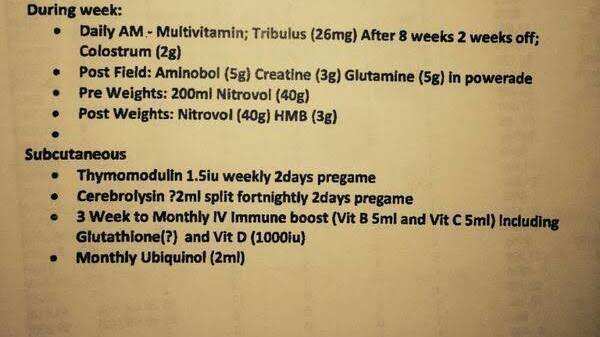 “A spreadsheet retrieved by the club from Dank's computer log-in at Windy Hill shows a schedule of Thymomodulin injections given to Essendon players over 16 weeks. The spread sheet is titled "2012 THYMODULIN".