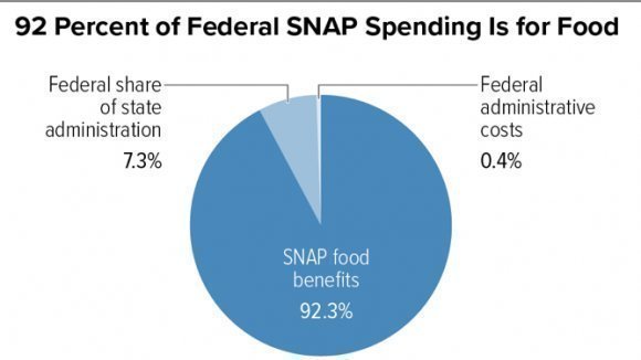 In fiscal year 2018, the federal government spent $68 billion on SNAP and other related food assistance programs. Ninety-two percent of SNAP spending went directly to benefits that households used to purchase food, and 7 percent went to state administrative costs, including eligibility determinations, employment and training and nutrition education for SNAP households, and anti-fraud activities.