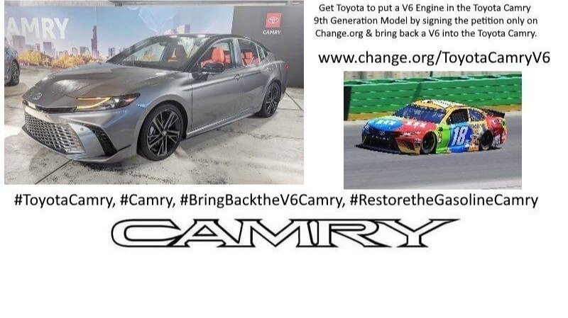 I know the Camry is built in Kentucky & I know it races in NASCAR since 2007. I know now that I will be triumphant in doing my petition to bring the standard Gasoline Camry back with it's V6 for the 2026 Model Year.