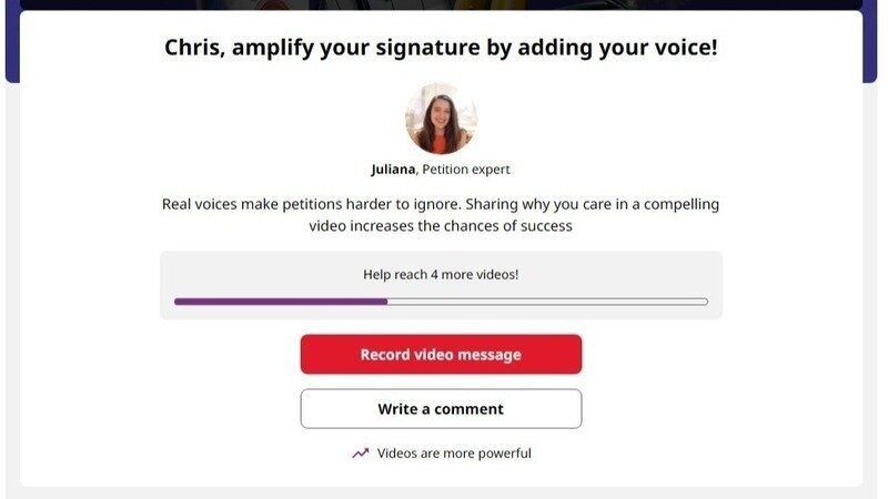 I wanted to let you know that another strategy to make our voices heard is by recording a 30-second supporter video. You can find that section at the top of this petition or by using this link to make things easier.