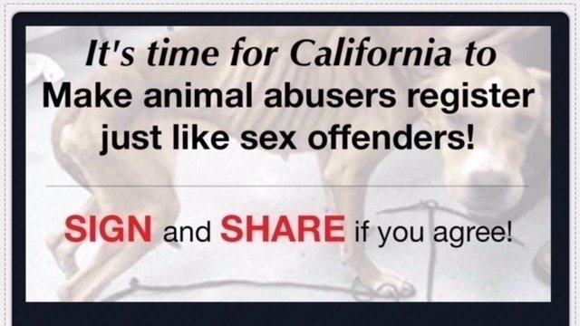 Implement an animal abuser registry in California.https://www.change.org/p/california-state-house-california-state-senate-california-governor-jerry-brown-senator-jim-beall-implement-an-animal-abuser-registry-in-california