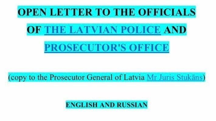 ОТКРЫТОЕ ПИСЬМО ДОЛЖНОСТНЫМ ЛИЦАМ ЛАТВИЙСКОЙ ПОЛИЦИИ И ПРОКУРАТУРЫ