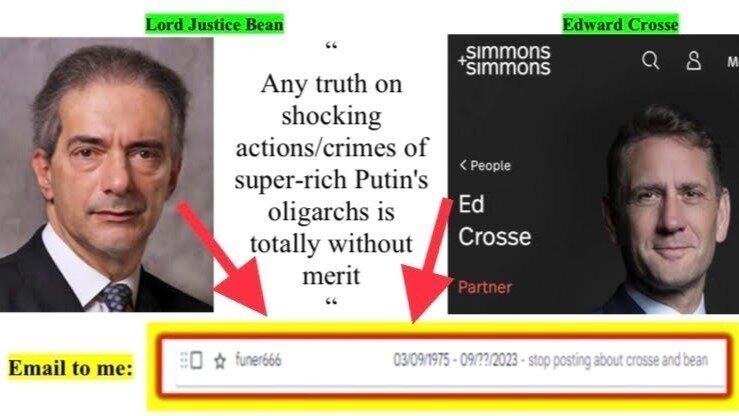 Although I received a huge number of threats, including very ominous ones, this email scared me very much and I thought about whether, in this case, it would be better to fulfil the demand that I stop making updates about Lord Justice Bean and Edward Crosse of Simmons & Simmons.