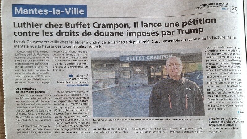 Actualización de la peticiónQuand les droits de douane frappent la musique : sauvons nos savoir-faire françaisLA PRESSE LOCALE RELAIE NOTRE APPEL