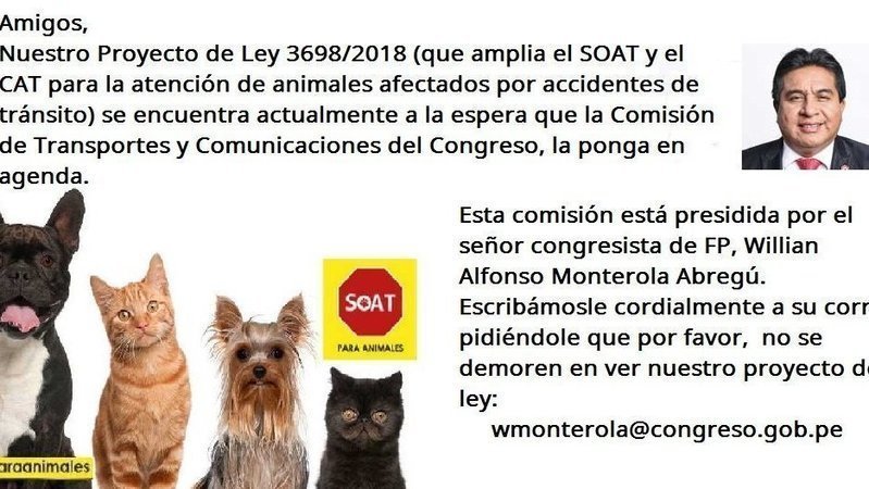 Update petisiQue el SOAT en Perú, también beneficie a los animales en caso de accidentes de tránsito.¡Amigos demos un paso más!