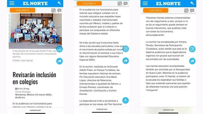 Actualización de la petición¡Que exista una auténtica Educación Inclusiva en todas las escuelas de Nuevo León!Revisarán inclusión en escuelas privadas de Nuevo León