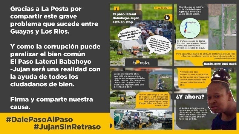 Petition updateQue la Corte Constitucional permita la construcción del Paso Lateral Babahoyo-JujanGracias a La Posta por compartir esta noble causa en sus plataformas