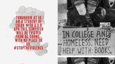 A student of color is being asked to leave the QC dorms by 10am tomorrow. They worked really hard this semester to get an above 3.0 gpa so they can graduate successfully. But qc is now asking them to leave despite the fact they have no where to go. We are demanding that qc administration, who have stated they care about student issues especially issues around diversity give them up to 1 month to transition into safe and permanent housing. During this time the student would be allowed to remain in the dorms.