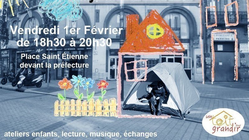 Ce vendredi 1er février, nous vous proposons de nous RASSEMBLER dès 18h30, les parents sont invités à venir avec leurs enfants, citoyens de demain, concernés et témoins également de toutes ces familles vivant sans toit. Des ateliers rencontres, lectures et dessins leur seront dédiés sur la place St Etienne, devant la préfecture. Pour les adultes, suivront des lectures en lien avec les familles de migrants ponctuées de morceaux joués par des musiciens solidaires. Apportez votre texte si vous souhaitez partager vos mots en lien avec toutes ces familles sans toit.