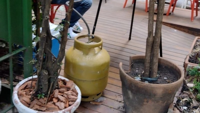 Botijão de gás na calçada do restaurante SOLE neste domingo dia 30 de outubro de 2022 no Leblon.