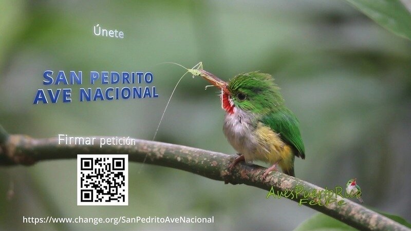 El San Pedrito lleva por error en su nombre científico el gentilicio “mexicanus”. La intención de su descriptor o autor era llamarlo “Todus portoricensis”. Llevamos una campaña para que esto sea corregido. Este aparente simple acto de rectificación, es para nosotros un elemento fundamental que puede ayudar a construir las bases necesarias en la protección de los hábitats ocupados por el San Pedrito y toda la biodiversidad. de nuestro archipiélago de Puerto Rico. La restitución de su nombre originario nos permite ver en una especie toda la belleza que encierra nuestra biodiversidad. Además, puede facilitarnos el comprender los enormes beneficios que nos brinda la naturaleza con su frágil y compleja estabilidad que resulta ser la que que nos asegura nuestra supervivencia. Esta es, en última instancia, la relevancia que puede tener la restitución del nombre científico de una de las aves mas antiguas y emblemáticas de Puerto Rico. Esto es un acto de justicia biológica y taxonómica para con el ave, unido a nuestra responsabilidad social y ecológica con Puerto Rico.