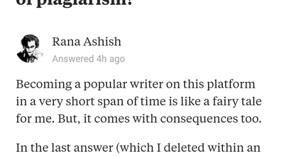 Rana Ashish , a popular writer in quora got a notice that he has plaigarized his answers but in one of his recent answers he has clearly shown the edit log and thus it shows he is innocent. Ironically the blogs have copied his answers without even changing his name.Quora moderation you must have a look at it.