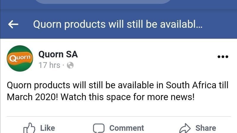 Competitor products are not in the same league. We beseech supermarket groups to support our call for Quorn to remain in South Africa.