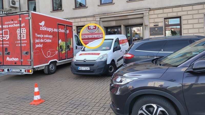 W trakcie dziesięciu minut czekania na spotkanie z dyżurującym prawnikiem, odbyły się dwie bitwy o to miejsce. Schemat był ten sam. Podjeżdża SUV, wysiada pan pod krawatem. Pewnym ruchem przestawia słupek i zaczyna atakować święte miejsce pojazdem. Z budynku wybiega strażnik krzycząc „nie wolno!”. Ze stróżówki wybiega drugi strażnik i krzyczy na pierwszego „zostawiłeś ku*wa petenta samego”. Równocześnie kierowca trzymając kurczowo słupek krzyczy „przecież szefa nie ma!”. Panowie z ochrony nie odpuszczają i kierowca „jedzie na płatne”.
