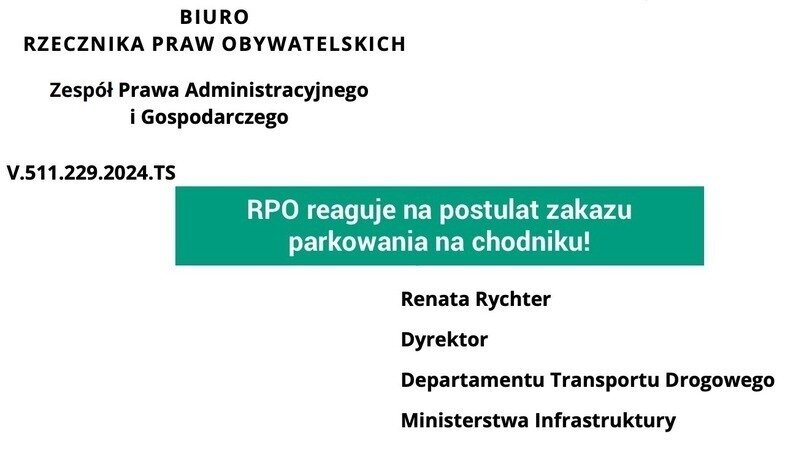 W połowie czerwca Rzecznik Praw Obywatelskich zrzucił bombę, w postaci dość niewinnego pytania do ministerstwa infrastruktury w sprawie parkowanie na chodniku.