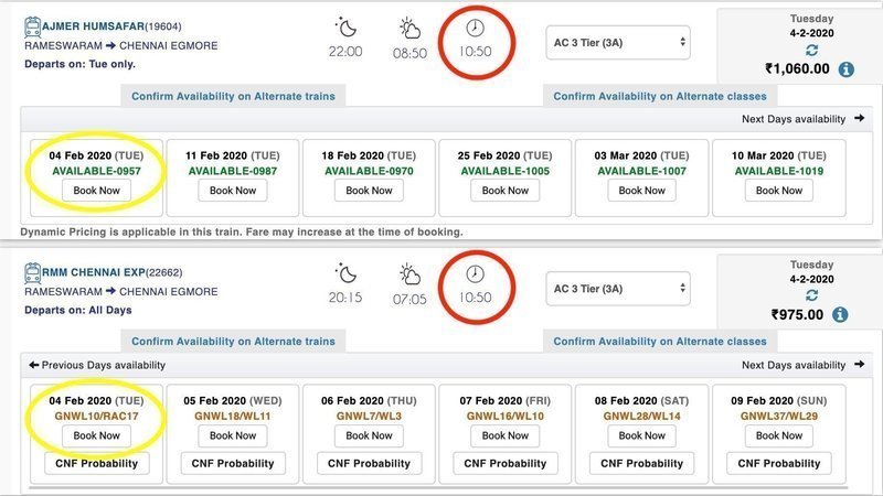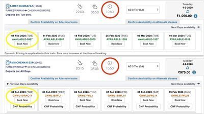 On several occasions, more than 80% of the 3rd AC berths are empty /unbooked till Chennai. The other two daily trains Sethu Express and the Rameswaram express are invariably overbooked.