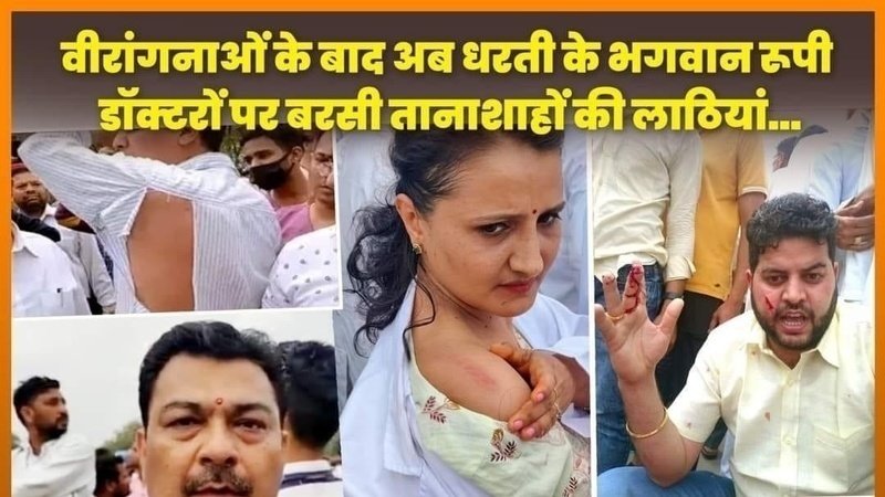 Many private doctors were being beaten by police at the agitation site including few ladies Doctor were also injured,Few doctors were taken at local police station from agitation site.