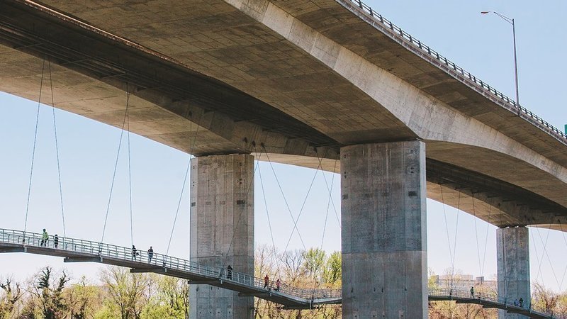 BACKGROUND ON THE BRIDGE: The Robert E. Lee Memorial Bridge in Richmond, Virginia carries U.S. Route 1 and U.S. Route 301 across the James River at the Fall Line. The city acquired the original bridge from Richmond Bridge Corp in 1933, and it was named the James River Bridge but was later renamed for the Confederate general.
