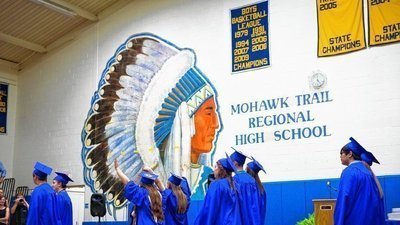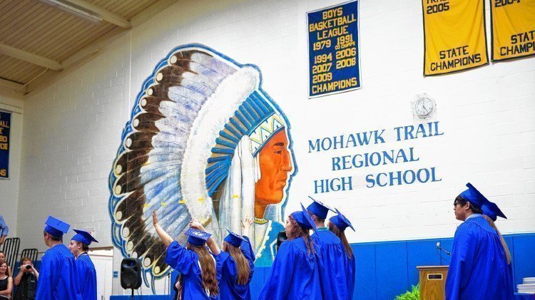 The Mohawk Trail Regional High School Class of 1978, Shelburne Falls, MA gifted a large painting of a native Indian painted on the gymnasium wall 40 years ago. This was a gift that was left as a tribute and to honor the school, the community, and the history of the area.