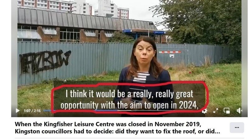 Sarah Olney says in this video in September 2021 that Kingston Council was told in 2016 that The Kingfisher Leisure Centre was coming to the end of its useful life.