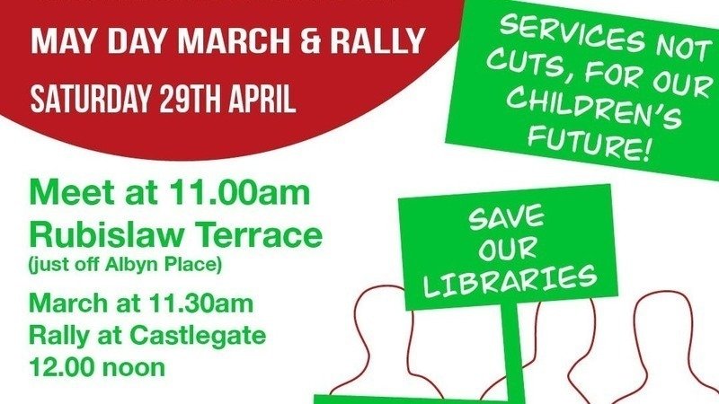 This year's May Day theme will be "Services, not cuts, for our children's future!" and the Aberdeen TUC have invited Save Aberdeen Libraries and Save Bucksburn Swimming Pool as guests of honour.