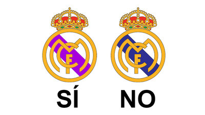 Por eso, solicitamos al Real Madrid que haga cumplir los estatutos y cambie la franja azul del escudo por la correcta, el morado.