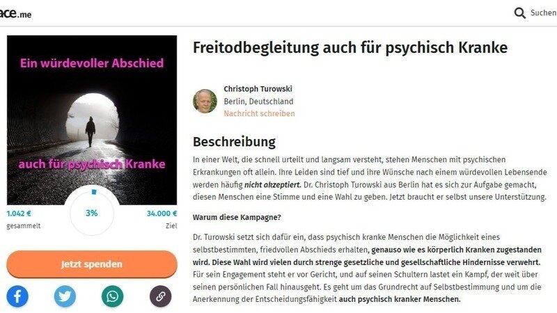 Weil mein Ende nur mir selbst gehört.Freitodbegleitung auch für psychisch Kranke - Unterstützung für Dr. Christoph Turowski