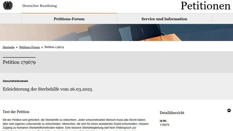 Weil mein Ende nur mir selbst gehört.Deutscher Bundestag: Petition "Erleichterung der Sterbehilfe vom 26.03.2025" bitte mitzeichnen
