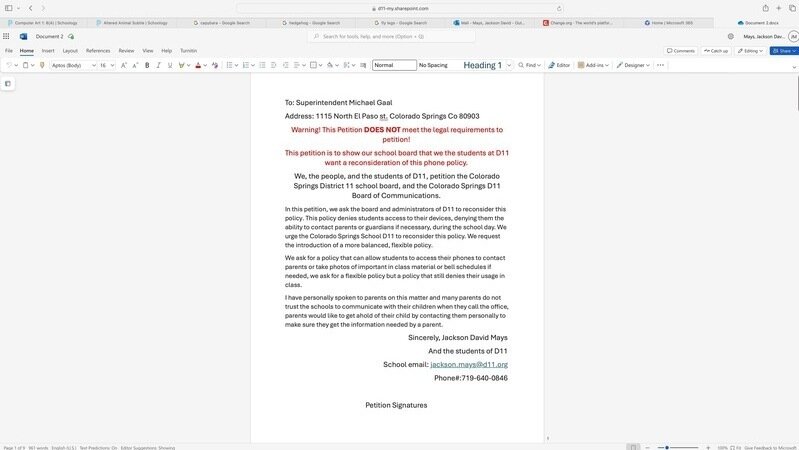 Dear supporters and students of D11, the petition was printed and filed with all signatures yesterday and was sent to the Superintendent Michael Gaal.