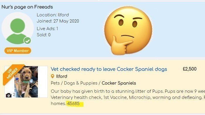 - Why have lots of puppies been advertised on FreeAds under various names with your owner's breeding license number (45685)?