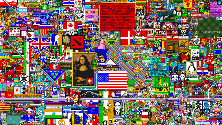 When r/place was made back in 2017, all the Internet users from different communities and Fandoms from arround the world worked together to draw on the same canevas of a million pixel square. It's a shame they only made it once as the final result was amazing! This social experiment depicted perfectly how humans and society can find a way to organize themselves and find a place for each community in a limited place in a friendly and peaceful environment. This social experiement was a success and brought many strangers around the world to work for a cause they have in common.
