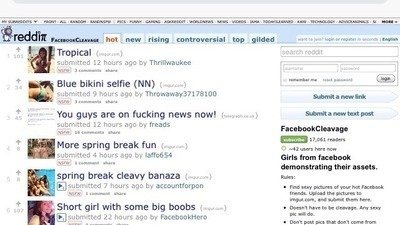 This page asks people to submit hot pictures of sexy girls they've found on Facebook. http://www.reddit.com/r/FacebookCleavage/
