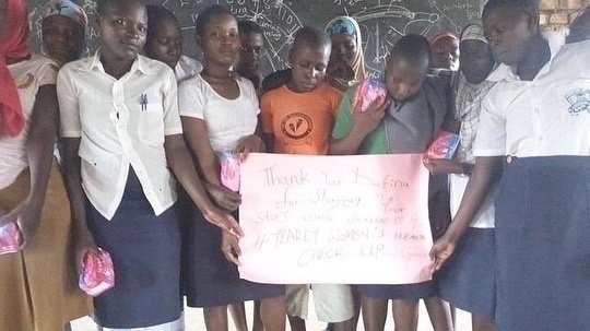 The message says “Thank you Dafina for sharing your story with us! We ❤️ you! #Yearly Women’s Health Check Up! Uganda