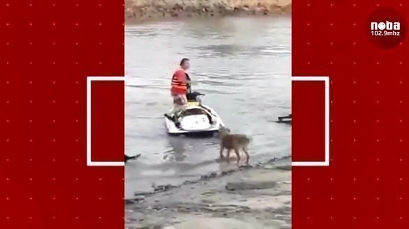Este acto se vio en las costas del Río Paraná en San Nicolás. Un hombre busca atropellar a un perro con su moto de agua.